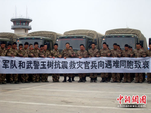 玉樹災(zāi)區(qū)巴塘機(jī)場(chǎng)舉行默哀活動(dòng)(圖)