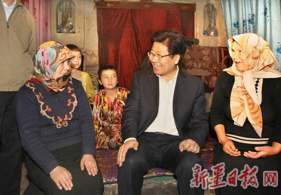 “你好啊,我從烏魯木齊來看望大家!”5月9日下午,新疆維吾爾自治區黨委上午在烏魯木齊舉行的北疆片區座談會剛一結束,自治區黨委書記張春賢立即趕往喀什,看望各族群眾,就有關民生工程建設進行調研。一下飛機,來不及休息,張春賢就驅車前往喀什市多來提巴格鄉14村。走進村民玉蘇甫·艾買提的院落,張春賢便上前握住他的手說。