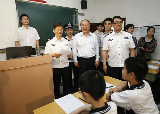 中新網6月12日電 國務委員、公安部部長孟建柱6月10日至11日在重慶調研時,專門到重慶市求精中學檢查指導校園安保工作。