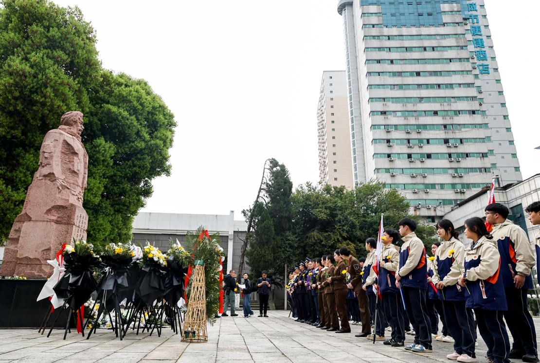 江西南昌:青年們在方志敏銅像前齊聲誦讀《可愛的中國》