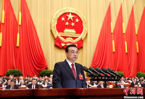 3月5日,十二屆全國人大四次會議在北京人民大會堂開幕。國務院總理李克強作政府工作報告。中新社記者 劉震 攝