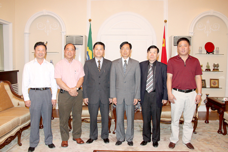 中新網4月17日電 據巴西南美僑報/巴西僑網報道,驚悉中國青海玉樹發生地震后,4月16日中午,圣保羅華人社團部分僑領吳耀宙、陳榮正、何安、張偉趕到中國駐圣保羅總領館,了解地震受災情況,表達僑胞募捐救災意愿。孫榮茂總領事、邊春剛副總領事接待了各位僑領并通報了災區情況。
