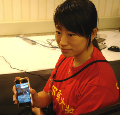 在中國代表團新聞中心協助工作的卡爾頓大學留學生姜瑛,在會見結束后沖進新聞中心,興奮地叫道:“我看到主席了,他離我很近,非常親切,沒有一點架子。”她說,胡主席與站在第一排的學生握手,當胡主席要離開時,同學們大聲地表達問候,他還特意停步向同學招手。姜瑛用手機拍下,并與新聞中心的同伴們分享。(翁曉青)