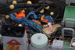 失事船只的救生器具被第一時間趕到失事現場的“第一山田丸”打撈上來。(日本新華僑報網圖片)