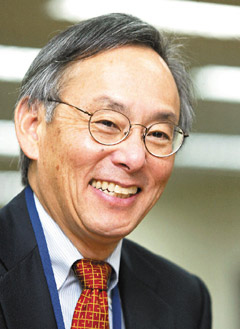 在勞倫斯伯克利國(guó)家實(shí)驗(yàn)室,朱棣文主推生物燃料和太陽(yáng)能研究,成為控制溫室氣體排放量的有力代言人。去年,朱棣文曾在全國(guó)清潔能源會(huì)議上為控制溫室氣體大力鼓呼:“氣溫改變5攝氏度將引發(fā)大范圍爭(zhēng)奪水和可耕地的資源戰(zhàn)爭(zhēng),大量人口將流離失所。我們不是在談?wù)?萬(wàn)人,也不是在談?wù)?000萬(wàn)人。我們?cè)谡務(wù)摂?shù)以?xún)|計(jì)將被洪水永遠(yuǎn)淹沒(méi)的人。”