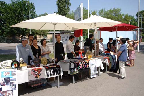 記者在現(xiàn)場看到,許多華僑華人都驅(qū)車感到義賣現(xiàn)場,很多奧地利朋友也對義賣表現(xiàn)了濃厚的興趣。有一位不知名的奧地利朋友用一百歐元購買了一個標價僅為二十歐元的坤包。記者現(xiàn)場采訪了這位朋友。她說,在得知發(fā)生于中國四川的地震災情之后,她一直想尋求一種方式把她對于災區(qū)人民的關心表達出來,現(xiàn)在有這么一個機會,她感到很開心。不但可以通過這種方式把自己的一份愛心獻給災區(qū),同時還可以買到很多平時市場上根本看不到的具有濃郁的中國風情的物品,她認為絕對是不虛此行。