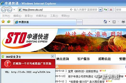 申通快遞網站遭黑客“掛馬”