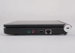 昭陽M10的機(jī)身側(cè)面接口比較簡單,但也涵蓋了基本的使用需求。機(jī)身前端沒有設(shè)置任何功能接口,不過內(nèi)置了一組雙聲道立體聲音響,在閑暇時(shí)放上一段舒心的音樂也是不錯(cuò)的選擇。機(jī)身右側(cè)設(shè)置了一對(duì)音頻I/O接口、一枚USB2.0接口、一枚RJ45網(wǎng)絡(luò)接口以及轉(zhuǎn)軸上的安全鎖孔,左側(cè)除電源插孔外還加入了VGA視頻接口、SD讀卡器以及USB2.0接口,足以滿足外接存儲(chǔ)設(shè)備或顯示設(shè)備的需要。