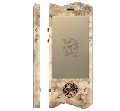 Mobiado制造商的這款型號為CPT001的奢華概念手機,采用了復古的大理石雕刻工藝制造,是文藝復興時期著名的藝術形式的一種表現,這樣的設計用在現在的通訊產品上還實屬首見。除了外形上的與眾不同,這款主打奢華工藝的手機還在大理石的機身上雕琢了黃金字體添加了鍍金按鈕。并且采用藍寶石作為觸控屏幕。手機的導航鍵部分還采用了手工機械手表機芯的設計。這款手機給人兩種感覺,第一是重量比較沉,第二個是價格必然更加昂貴,貴就貴在它的特殊設計和精密做工。