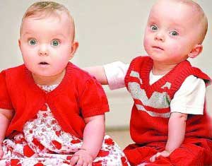 2007年5月,英國(guó)斯塔福德郡巴頓特倫特市一對(duì)夫婦生下了一對(duì)體重相差1倍的“奇跡雙胞胎”,當(dāng)?shù)艿苷材匪埂烟厣聛?lái)時(shí),體重竟然只有孿生姐姐哈麗特一半大!令人欣慰的是,13個(gè)月后,這對(duì)“大小雙胞胎”已長(zhǎng)成了差不多同樣大小的健康嬰兒。