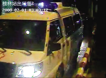 救護(hù)車離開收費(fèi)站時的監(jiān)控錄像截圖。桂林收費(fèi)站提供