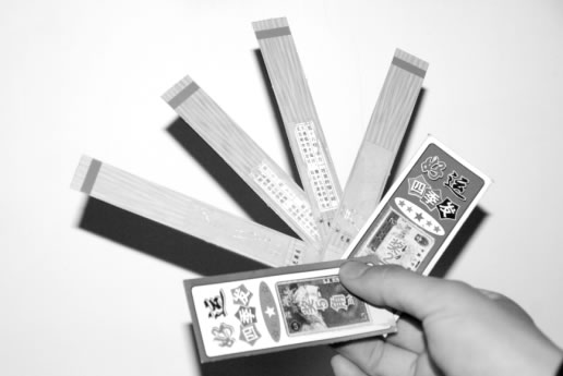 該棚子內除了抽簽外,還有大量的精美“小賭卡片”,上面印制著5角、1元和2元人民幣圖案,還寫著“20元以上獎學金到廠家兌獎,20元以下獎學金由小賣部支付,即開即樂”等字樣。
