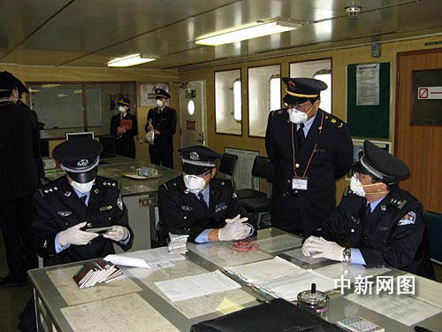 按照相關檢疫規定,此類船舶的船員在登陸之前,必須對其進行二次檢疫。該輪?科陂g,外高橋邊檢站民警全程對其進行了提口監護,以隨時注意掌握該輪人員上下情況,嚴防甲型H1N1流感病毒傳入境內。