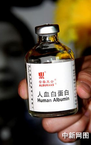 涉嫌致命的假冒人血白蛋白。張兆嶺 攝