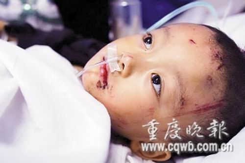 昨天(10月29日),記者在重慶市第六人民醫(yī)院見到了病床上這個(gè)叫孫浩的3歲男孩。“我不痛,我想媽媽了!睂O浩說到這里流下了眼淚。據(jù)了解,從孩子出事到現(xiàn)在,其父母一直沒有出現(xiàn),一直是干媽守在醫(yī)院。