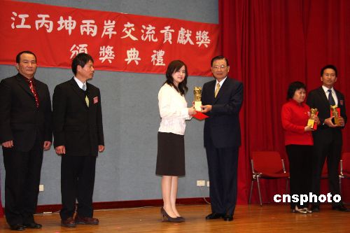 1月15日,海基會董事長江丙坤出席“兩岸經貿合作與交流研討會”,并頒發“江丙坤兩岸交流貢獻獎”。得主包括臺灣大學環境工程學研究所教授駱尚廉、夏潮基金會董事長宋東文等人。中新社發 陳立宇 攝