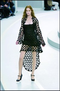 2008年Chanel的秋冬時裝秀場上,卡爾·拉格斐在秉承Coco Chanel“貧窮的奢華”的原則下,刻意給斜紋軟呢外套加上了抽線設計,拼接的碎布在手肘、口袋與短裙上隨處可見。不收邊的剪裁效果,充滿搖滾興味,戲劇化的荷葉邊、充滿立體感的打褶剪裁與布料上的紋路,成為Chanel本季的設計主軸。