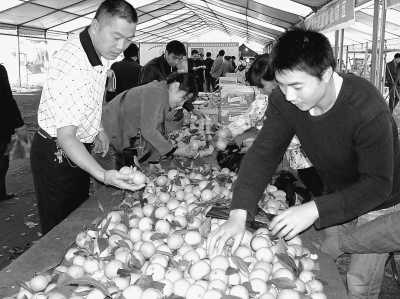 11月2日,湖南郴州市民在資興東江湖優(yōu)質(zhì)柑橘展銷會(huì)上購(gòu)買柑橘。 賀茂峰攝