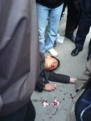 昨日下午3點40分,任先生一家三口在黃浦區(qū)城隍廟附近逛街時,因一位女店主質(zhì)疑任先生損壞了店中的一只暖瓶,爭辯中,任先生遭店主用鋼制暖瓶猛砸面部,血流滿面倒地昏迷不醒。