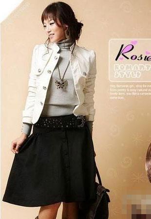 上身帥氣的皮外套和下身的黑色長裙有讓人意想不到的協調,如同天秤座的人天生具有理想主義和現實主義的看似矛盾的平衡,灰色的打底高領衫也給人很穩重的感覺。