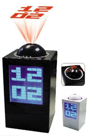 頂部有可以180度翻轉的投影儀,按任何鍵或者鬧鐘響起的時候,顯示屏上對應的時間、溫度、日期等將會被投影到你躺著都能看到的地方。但得有一個前提———你的房間比較黑暗。