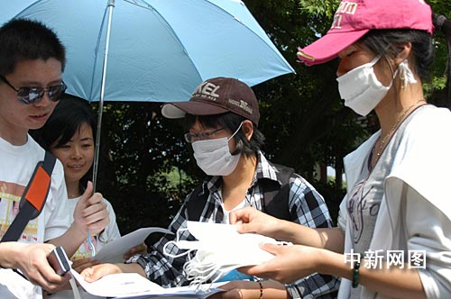 中新網(wǎng)杭州5月4日電(記者 江耘 通訊員 陳國(guó)利) “您好,這是我們印制的宣傳冊(cè),介紹了日常生活中預(yù)防甲型H1N1的方法,我們還給您準(zhǔn)備了口罩。如果您覺(jué)得需要,就麻煩您戴上它!苯裉煜挛2點(diǎn)多,游客羅先生與夫人正在西湖邊散步,迎面碰上兩位帶著口罩的大學(xué)生。