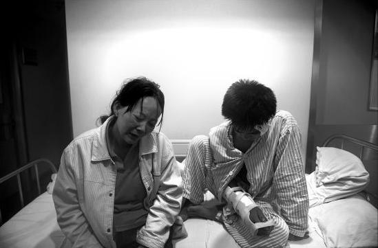 到昨日為止,兒子的搶救費用及其丈夫的醫療費用已超過5000元,盡管有親戚幫忙,但仍欠醫院將近一半的費用。住不起病房,她只好把丈夫蔡學斌轉移到醫院的走廊上。
