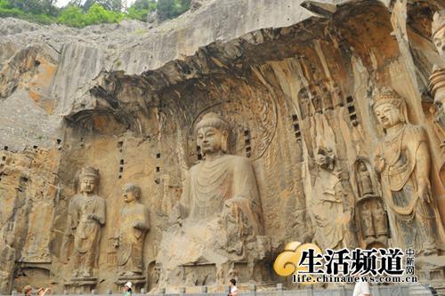 龍門石窟中規模最大的一組摩崖群雕奉先寺。吳歆 攝影