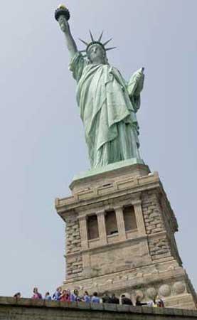 如果要追溯這座神像的來源,可以由當年法國為慶賀美國獨立一百周年而贈送一事說起,這座象征著兩國友誼的自由女神像,左手拿著獨立宣言,右手高舉火炬,雙眼平視前方,充份散發了英姿風范。她鼓勵著無數為實現理想而到美國的移民,因此她不但是紐約的象征,更是美國的象征。