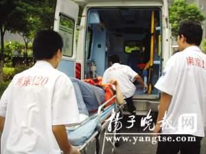 記者到現場時,年輕女子已從事發現場地上,爬進了離跳樓現場約30米的小區5號樓樓道內,她渾身是傷,躺在樓道內渾身發抖。嘴中發出痛苦的呻吟聲。民警剛剛趕至,封鎖了現場,同時呼叫120救護車增援。不一會兒,急救醫生趕到,迅速對受傷女子進行診斷,與民警一道將受傷女子送上急救車。