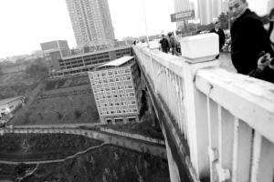 昨日下午5時(shí)18分,九龍坡陳庹大橋。一個(gè)做汽車銷售的老板在痛苦的吼叫中,在家人和跪在地上的兒子的注視中,縱身飛躍,結(jié)束了自己41歲的生命。