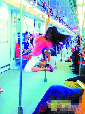 近日,一篇名為《南京地鐵二號線粉紅女郎大秀鋼管舞》的帖子出現在各大論壇,帖子稱,6月1日下午3點多,南京地鐵二號線經過學則路站時,車廂內一名粉紅女郎突然站起身,走到車廂一根扶欄下,旁若無人的大秀“鋼管舞”。