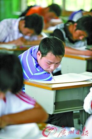 就讀于廣州市越秀外國語學校的高三男生勇仔(化名)的趕考路異于他人:媽媽推著輪椅,將他送到廣州市第三中學考場,接下來就由監考老師接手。勇仔的試室在4樓,兩個壯年男老師一左一右抬起輪椅,將他護送到座位上。由于從出世以來就身患“成骨不全”,勇仔無法靠雙腿行走。從小學5年級至今,他能有機會參加高考,可以說全賴媽媽龔女士的懷抱。