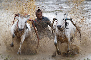印尼泥水稻田公牛比賽