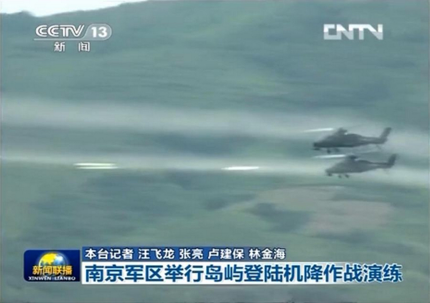 武直-10攻擊直升機發射火箭彈攻擊地面目標