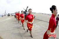 每一屆珠海航展都會有許多佳麗現身,而這次航展上的直升機模特更是讓觀眾大飽眼福。陳海峰 攝