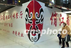 圖:中餐館以京劇臉譜招攬顧客