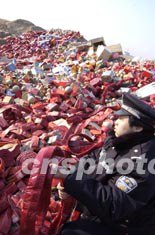 面對今年“禁放”嚴峻的形勢,北京警方十七日將依法收繳的價值十五萬余元的非法偽劣超標煙花爆竹進行集中銷毀,以此表示堅持“禁放”的決心。作者:任海霞