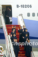 組圖:華航機組人員走下飛機受到舞獅歡迎