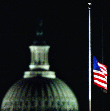 特寫:今天美國悲傷 星條旗在陰風愁云中舒卷(圖)