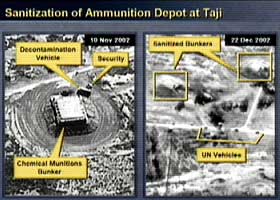 我們知道伊拉克已將它非法化學武器基礎設施的關鍵部分安放在其合法的民用工業里。所以從外表看,即使是專家,這些基礎設施與普通的民用設施沒有區別。非法與合法的生產能同時進行,或者軍民兩用的化學生產設施可以隨時轉產。