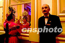 在美國(guó)芝加哥華人華僑春節(jié)聯(lián)歡會(huì)上,扮演楊貴妃的演員上場(chǎng)前整妝,與希爾頓酒店的洋服務(wù)生在羊年相遇,形成有趣的三“羊”相會(huì)。作者:王瑤