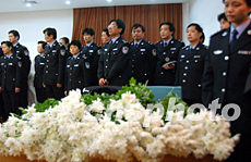 會后浦東警局為年僅四十五歲的陳衛國警員舉行了隆重的悼念儀式。