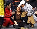 圖:韓國救援人員搶救地鐵縱火案傷員