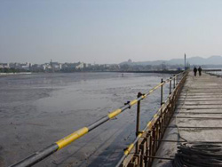 據中廣網報道,圍堰兩邊是截然不同的風景:一邊是碧波蕩漾,游船點點的秀麗西湖;一邊是湖底黑色的淤泥。中間圍堰有兩米多寬,全部用沙袋壘成,兩邊用鋼質構件固定,十分牢固。兩側水位的落差有三四米。抽干的湖底呈橢圓型,有幾臺小型水泵仍在工作,抽出從地下滲出的湖水。
