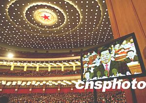 中新社3月14日電 人民大會(huì)堂現(xiàn)場報(bào)道:全國政協(xié)十屆一次會(huì)議今天上午九時(shí)在人民大會(huì)堂舉行閉幕會(huì)。