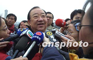 三月十四日上午,出席全國政協(xié)十屆一次會議閉幕式的全國政協(xié)委員朱慶生談起最近發(fā)生的非典型性肺炎時,立刻被記者團(tuán)團(tuán)圍住。作者:史利