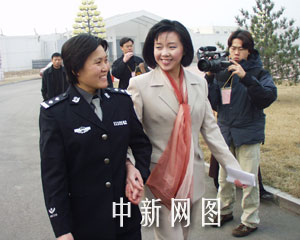 上午十時(shí)左右,身著米色套裙、白色皮鞋的滕春燕從位于北京大興的一所監(jiān)獄中走出來(lái)的時(shí)侯,與緊隨其后的兩位女警員相擁告別。面對(duì)早已等候在大門(mén)外的十多位中外記者,滕春燕興奮地說(shuō):“我現(xiàn)在的心情非常好。”為接女兒出獄,滕春燕的父親滕玉本專(zhuān)程自外地來(lái)到北京。