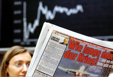 投資者一直在電視機(jī)前觀看伊拉克遭到大規(guī)模空襲的畫(huà)面,在空襲中許多伊拉克領(lǐng)導(dǎo)人的住所被炸毀,其中包括薩達(dá)姆的一所官邸。這使投資者對(duì)戰(zhàn)爭(zhēng)將很快結(jié)束并會(huì)取得勝利的信心增大。