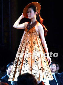 來自中國臺北的服飾佳作參加三月二十五日在北京舉行的“漢帛杯”國際青年時裝設計師作品大賽,以東方特色的扇面裙裝令人刮目相看。作者:賈國榮